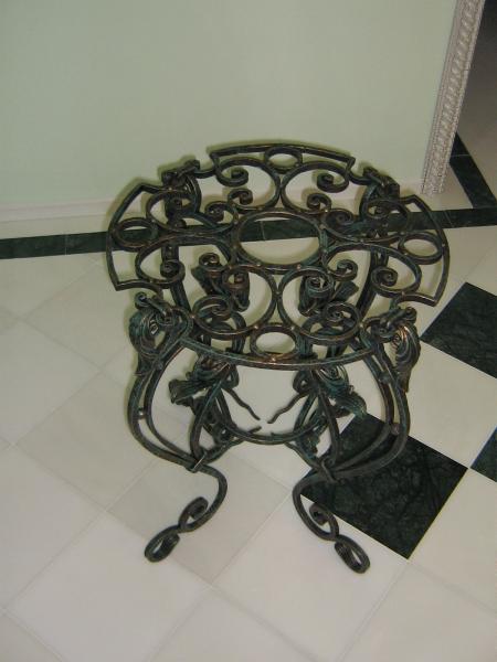 В комплекте со столиком есть возможность изготовить зеркало в кованой раме и кованый пуфик, выполненные в едином стиле.