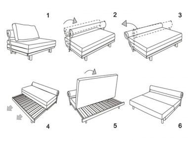 Механизм: Аккордеон. Наполнитель: ортопедические латы на металлокаркасе, полиуретан.