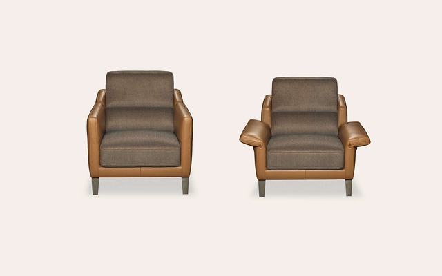 Подлокотники имеют возможность раскладываться наружу. Металлические ножки окрашены в темно-коричневый цвет. Обивка - натуральная кожа или ткань, возможно сочетание материалов. Наполнение - Memory Foam - инновационный высокоэластичный материал на основе полиуретанов. Более подробную информацию о модели можно получить, посетив наш магазин в ТЦ "ЛенинГрад".
