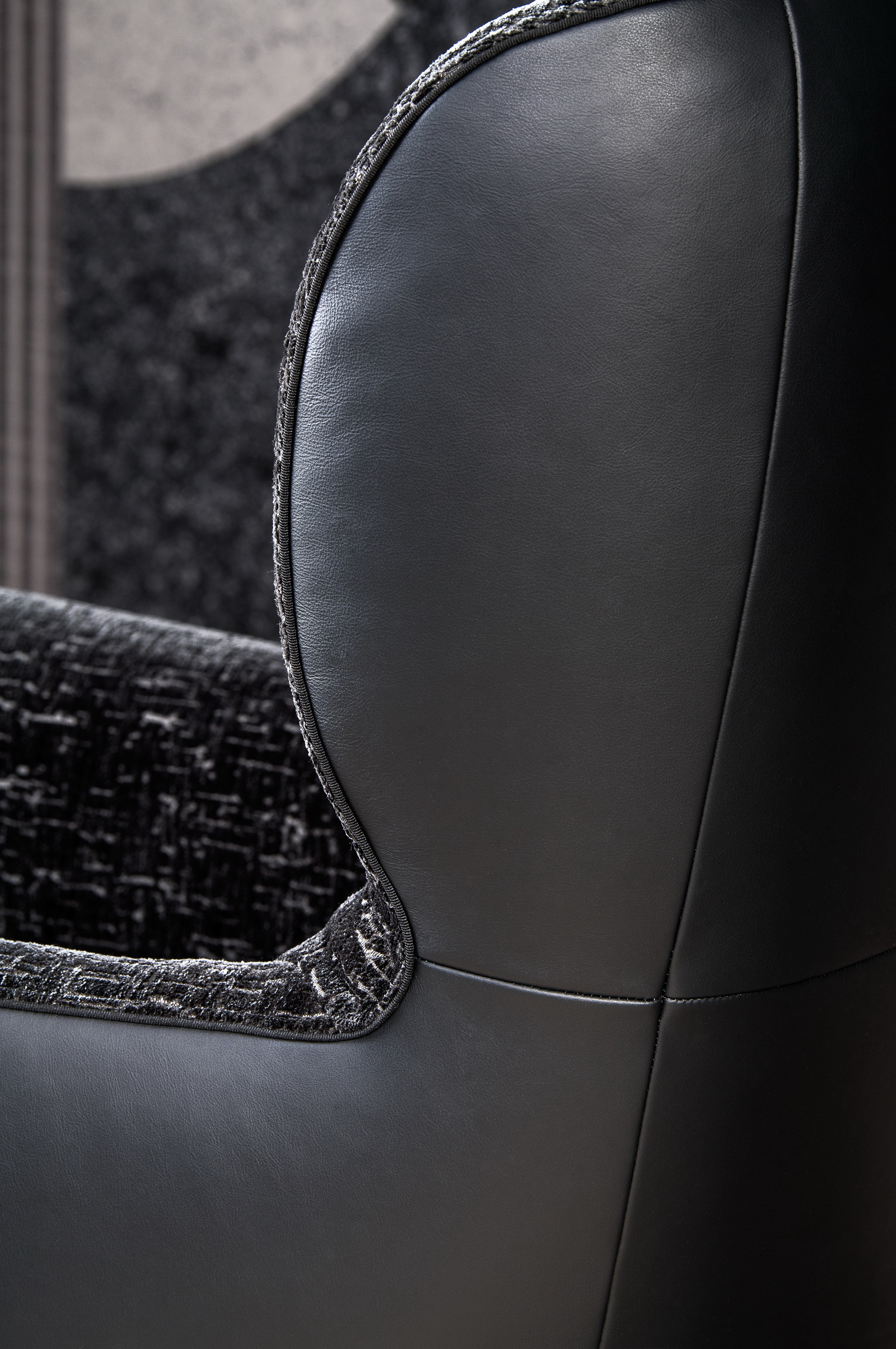 Изящный кант, обрамляющий сиденье, подлокотники и спинку, подчеркивает форму кресла и позволяет создать дополнительный акцент в дизайне. Он может быть выполнен в том же цвете, что и кресло, элегантно отличаться на пару тонов или же создавать контрастное сочетание.