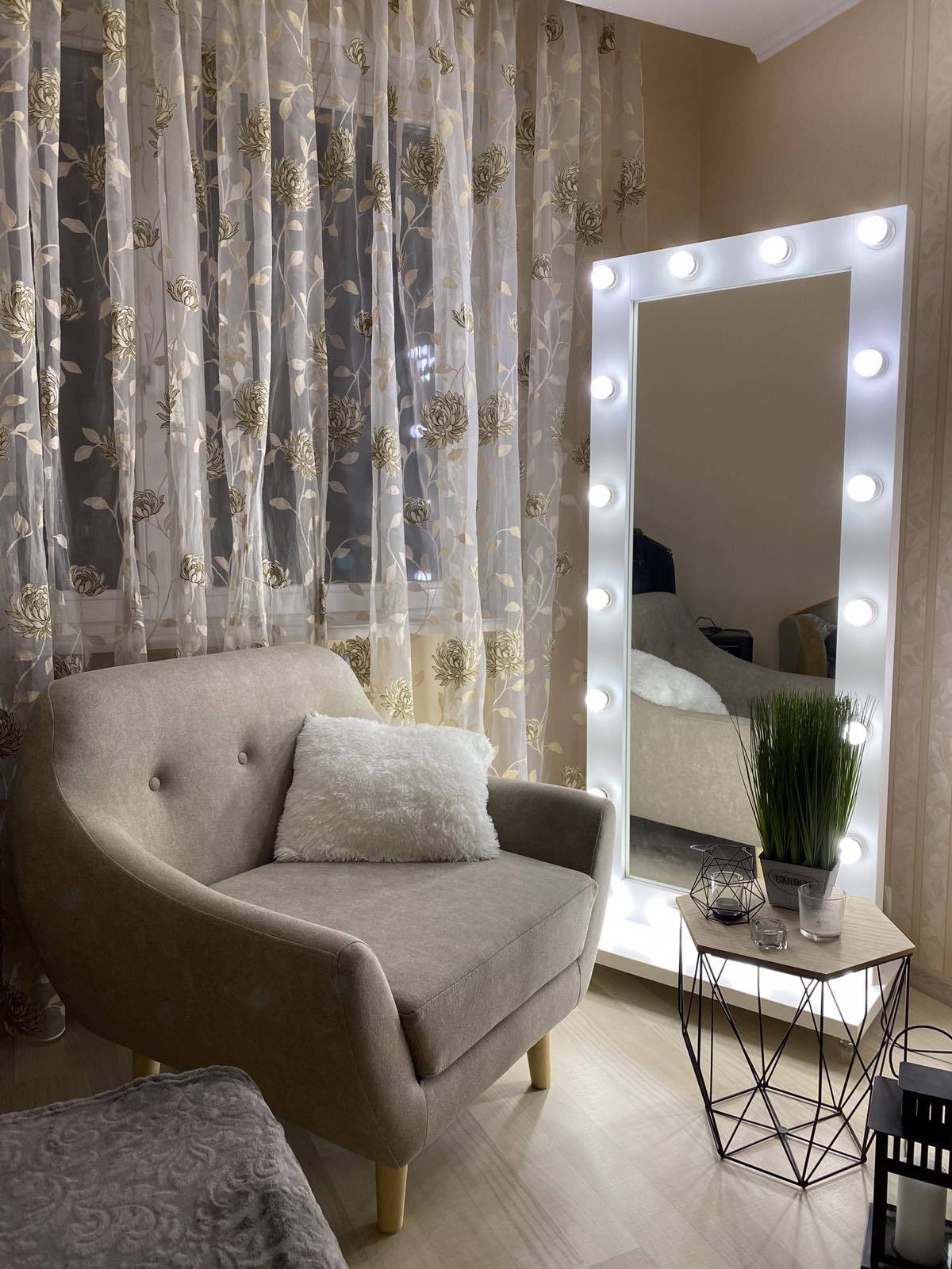 код 110510Стильное и удобное кресло на деревянных ножках, высокое зеркало с лампочками.