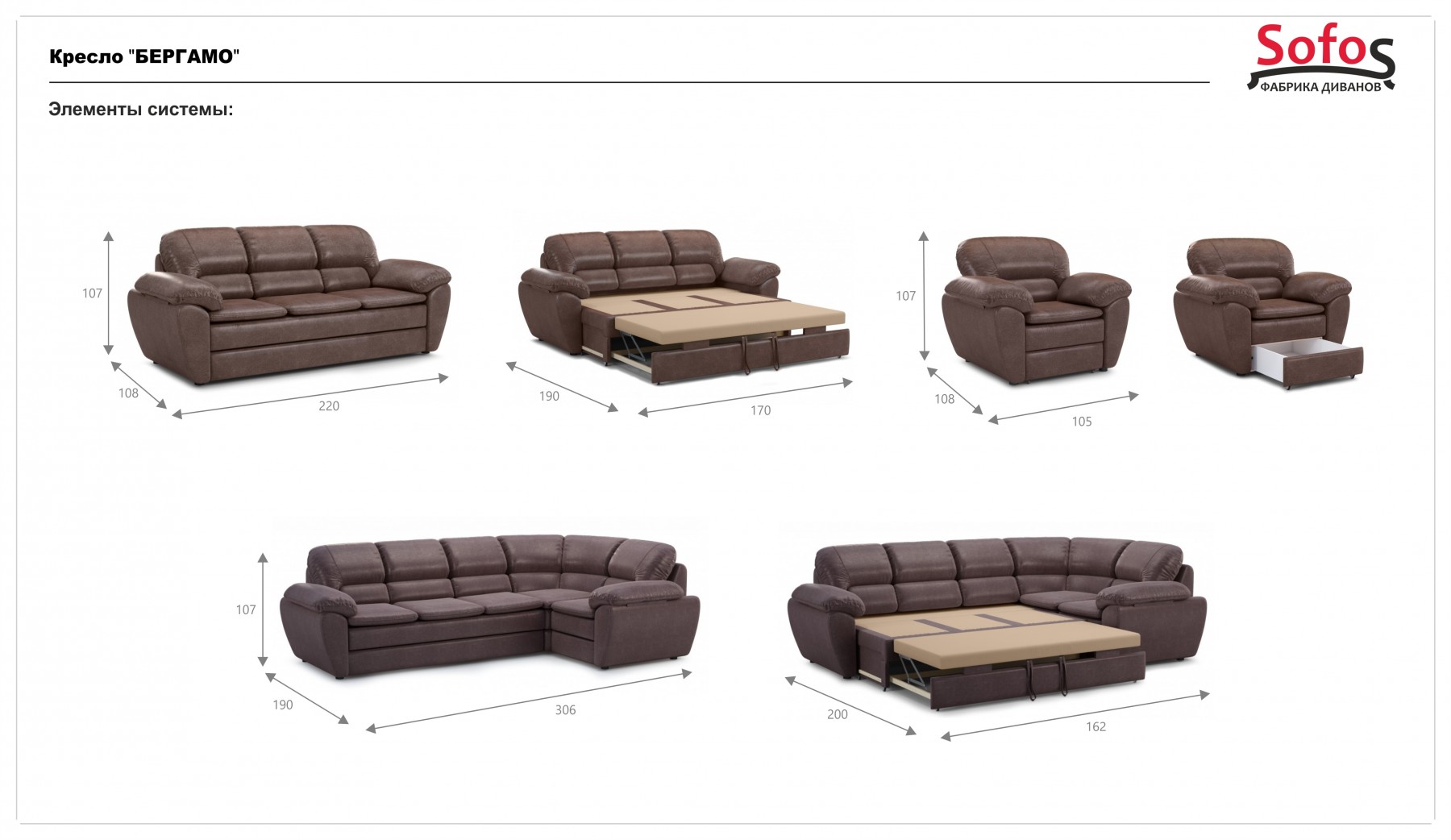 Размеры (ДхШхВ): 1100х1080х870 мм. Механизм трансформации: односекционный МТД.