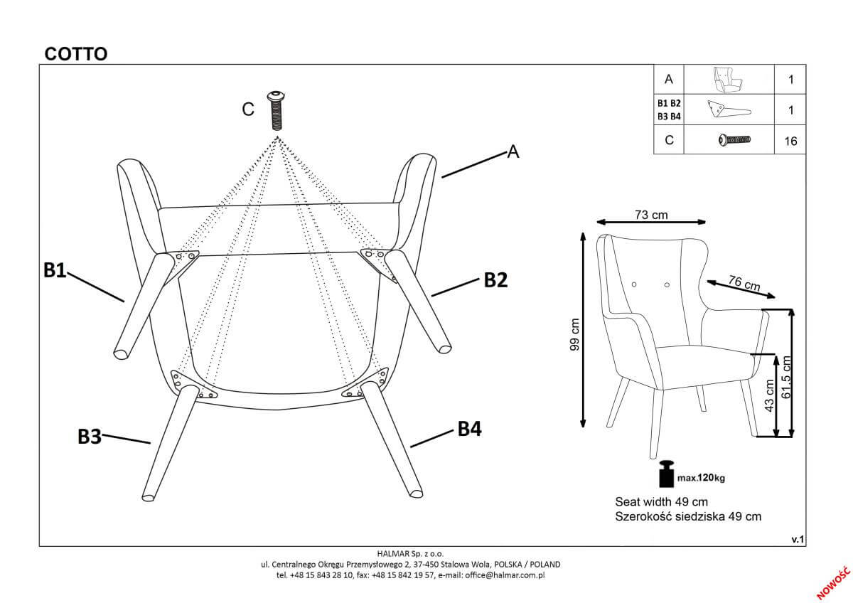 Максимальная нагрузка: до 120 кг.