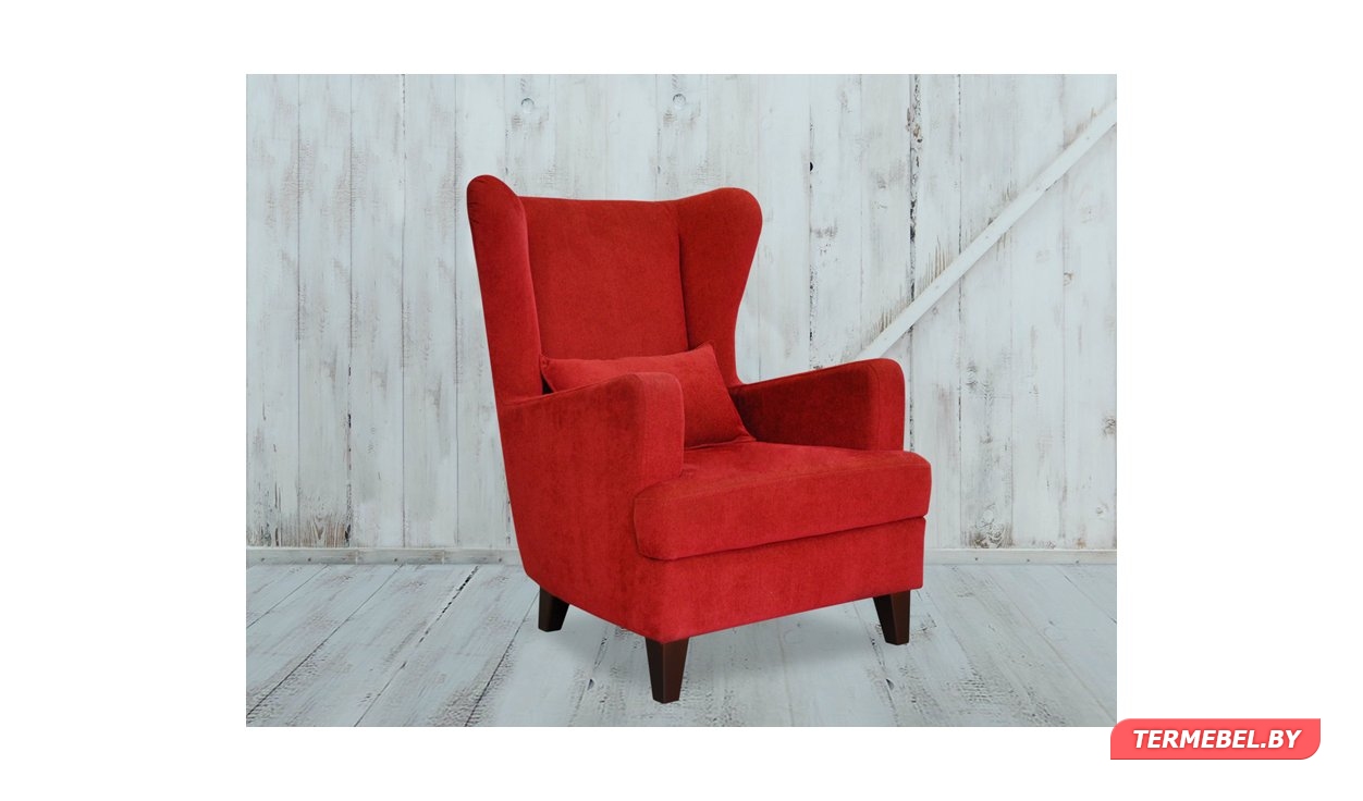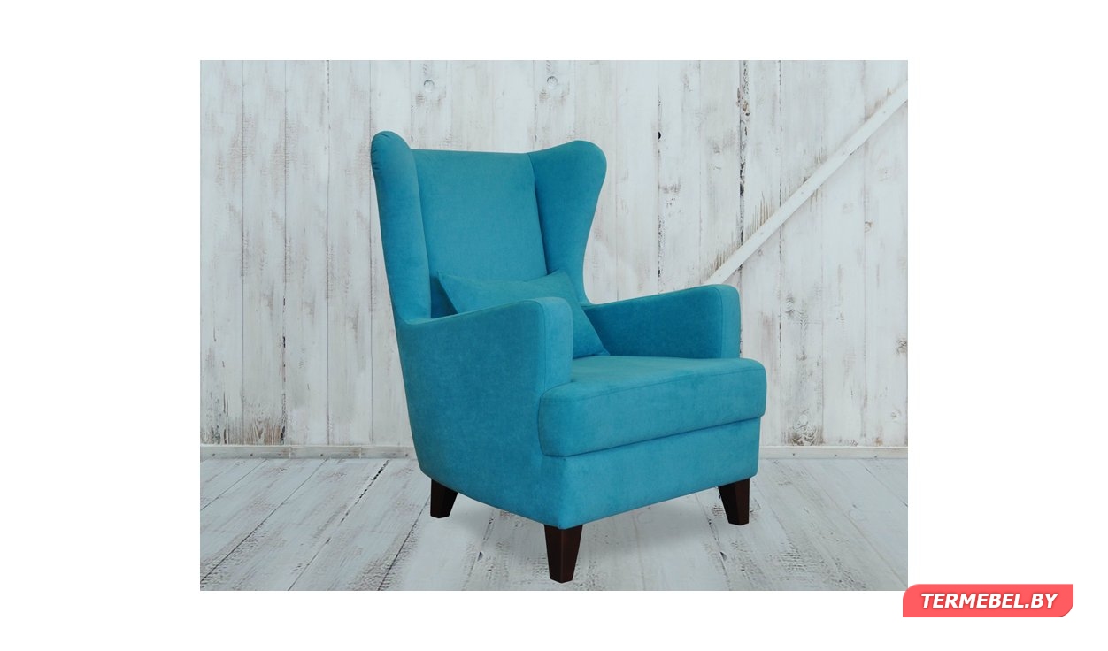 код 103496Интерьерное кресло с подлокотниками на деревянные опорах. Мягкая и высококачественная обивка.
