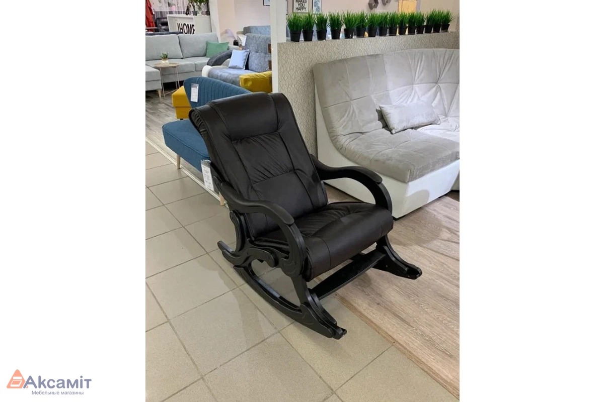 Кресло-качалка традиционной конструкции. Боковины и подлокотники данной модели изготовлены из дерева. Кресло-качалка имеет удобную выдвижную подножку. Максимальный комфорт во время отдыха создают эргономичная форма сиденья и спинки, мягкие подголовник и подлокотники, угол наклона кресла и оптимальная амплитуда качания. Обивка выполнена из экокожи.