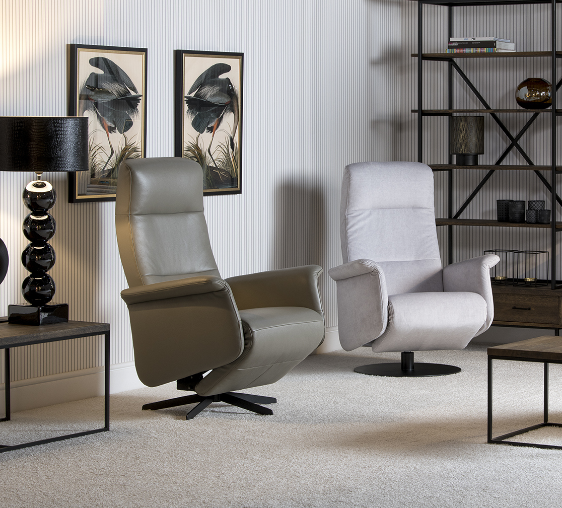 Все механизмы управляются электрическим реклайнером с акуммулятором. Кресла доступны с тремя основами: Fiver — крестовина с простыми формами, Spider — крестовина с закругленными формами, и Plate — круглая основа. Основы стандартно будут изготовлены в черном цвете (покрашены порошковым методом). Как платная опция по выбору цвет: White, Gray, Gold. Обивка – кожа натуральная или ткань. Широкий спектр цветов и фактур. Размеры: 82/93/(171)116.