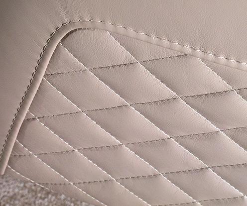 Просто взгляните, чтобы ощутить эту мощь: высокая спинка с мягкой, рельефной подушкой под спиной, над ней — выступающий, надёжный подголовник. В сочетании с подъёмной подставкой для ног они располагают к отдыху.