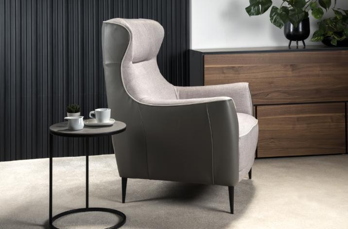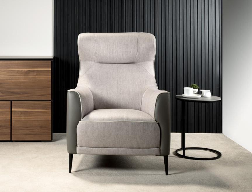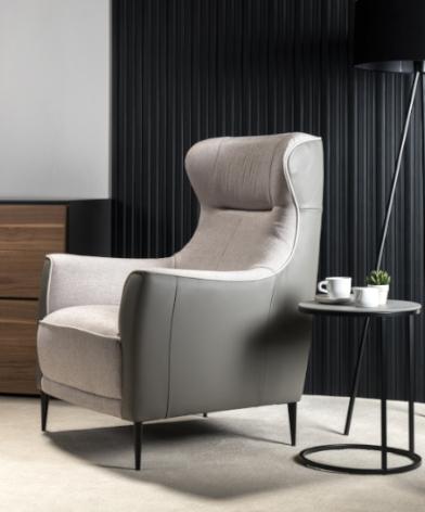 Элегантное и стильное кресло, выделяющееся аристократическим видом: стройные ножки, удобное сиденье, высокие подлокотники и еще более высокая спинка с прошитым горизонтально верхом, благодаря чему выделяется верхняя часть подголовника со слегка наклоненными назад крыльями. Приятно посмотреть... не говоря уже о том, как удобно устроиться в нем.