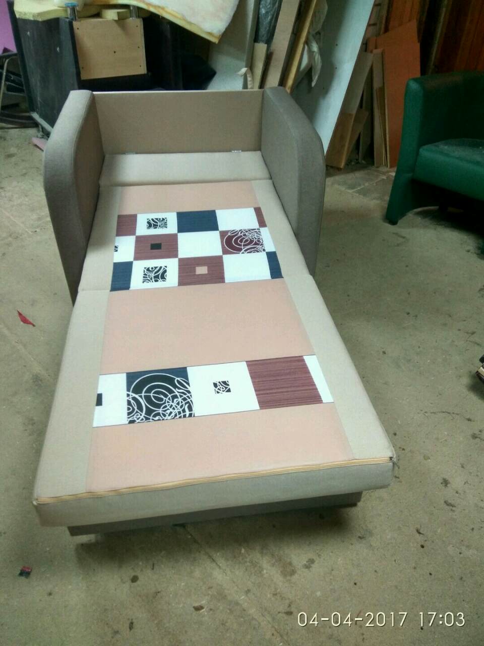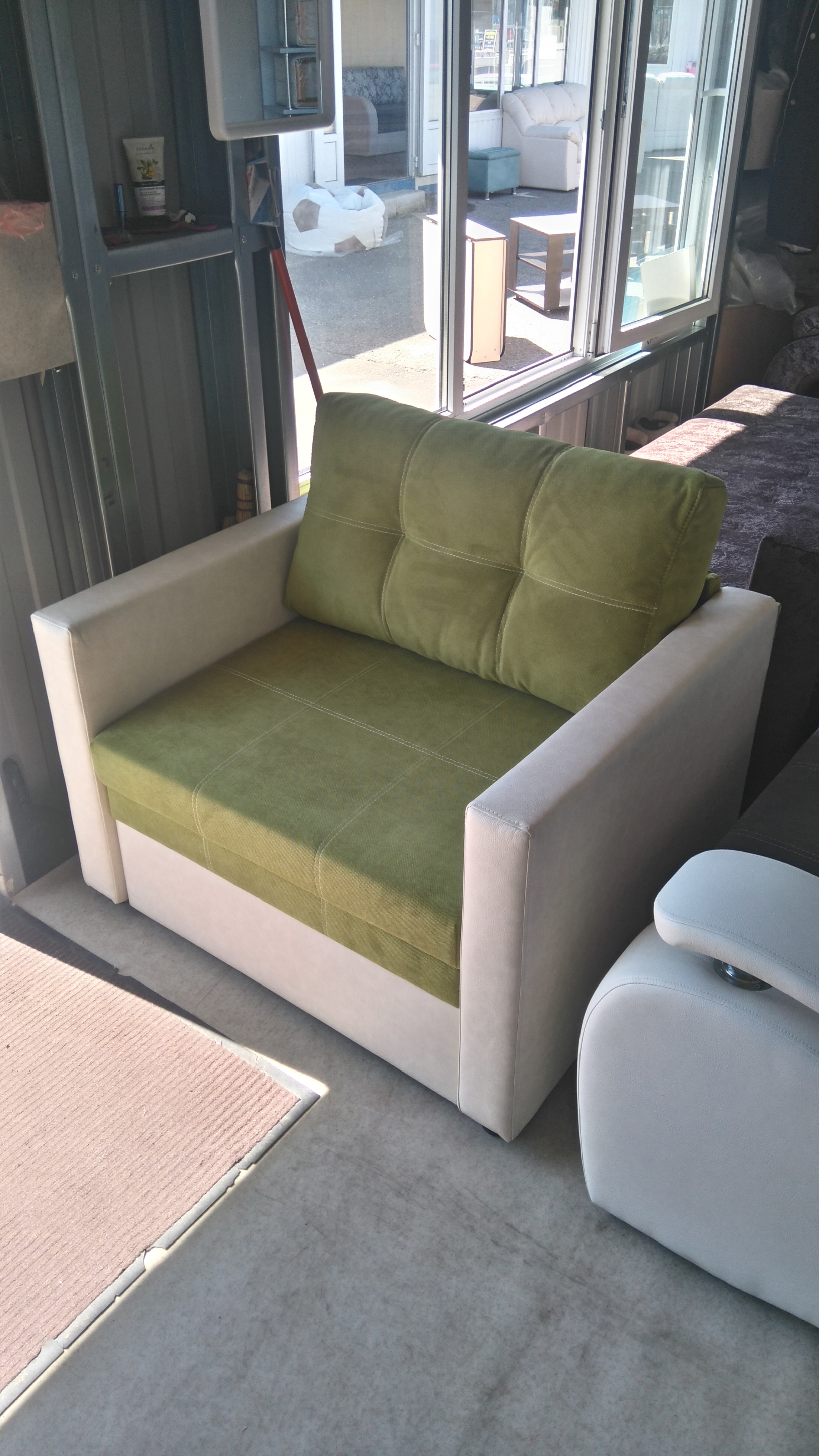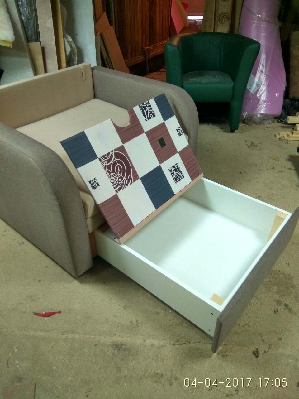 Стильное малогабаритное кресло с механизмом раскладки и ящиком для белья.