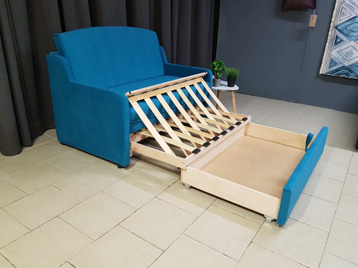 Малогабаритное кресло с механизмом раскладки и ящиком для белья.