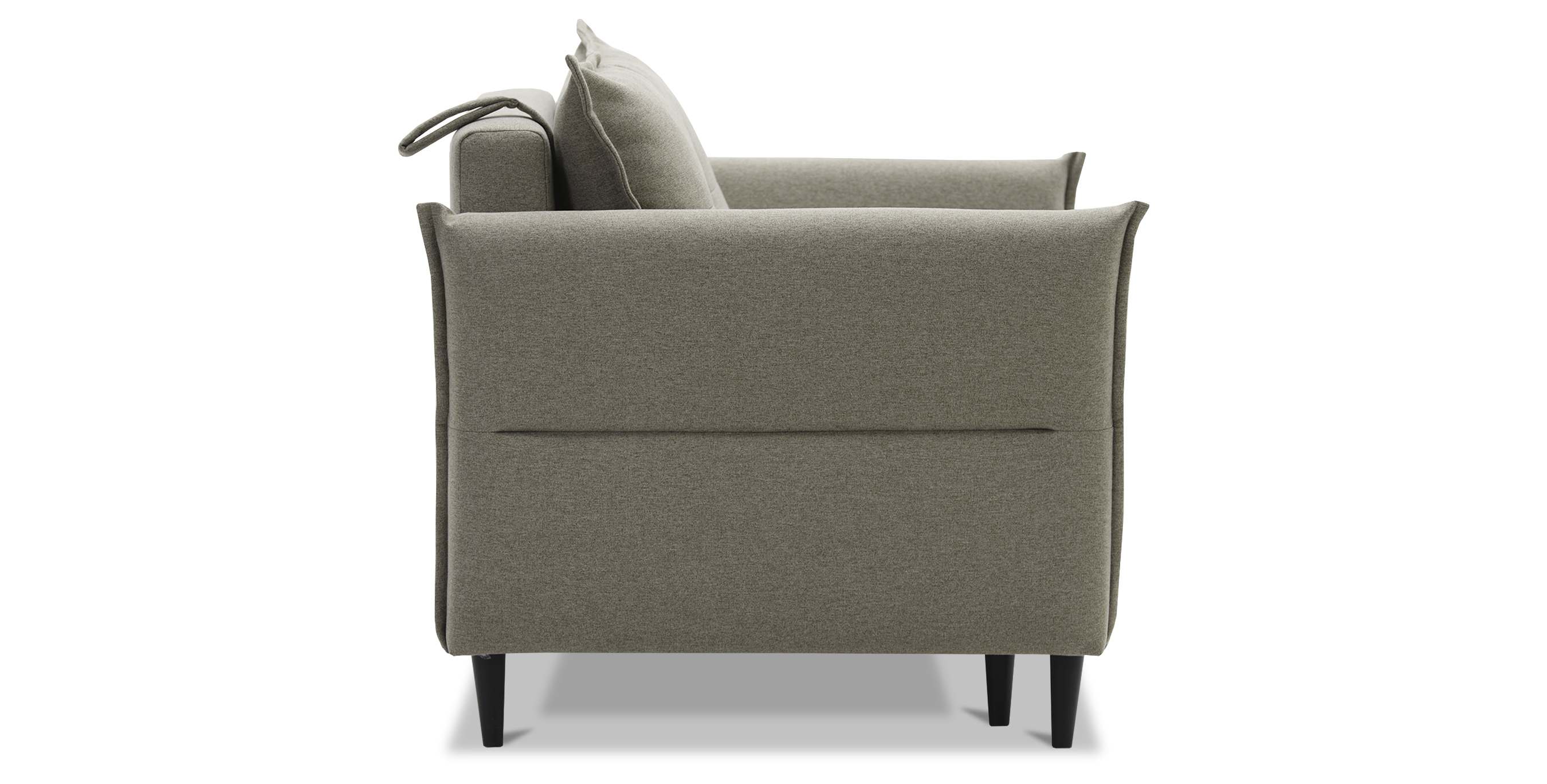 Стильный сканди-дизайн: квадратная стежка на приспинных подушках и сидении, стильная форма подлокотников с декоративными швами наружу, высокие деревянные опоры.