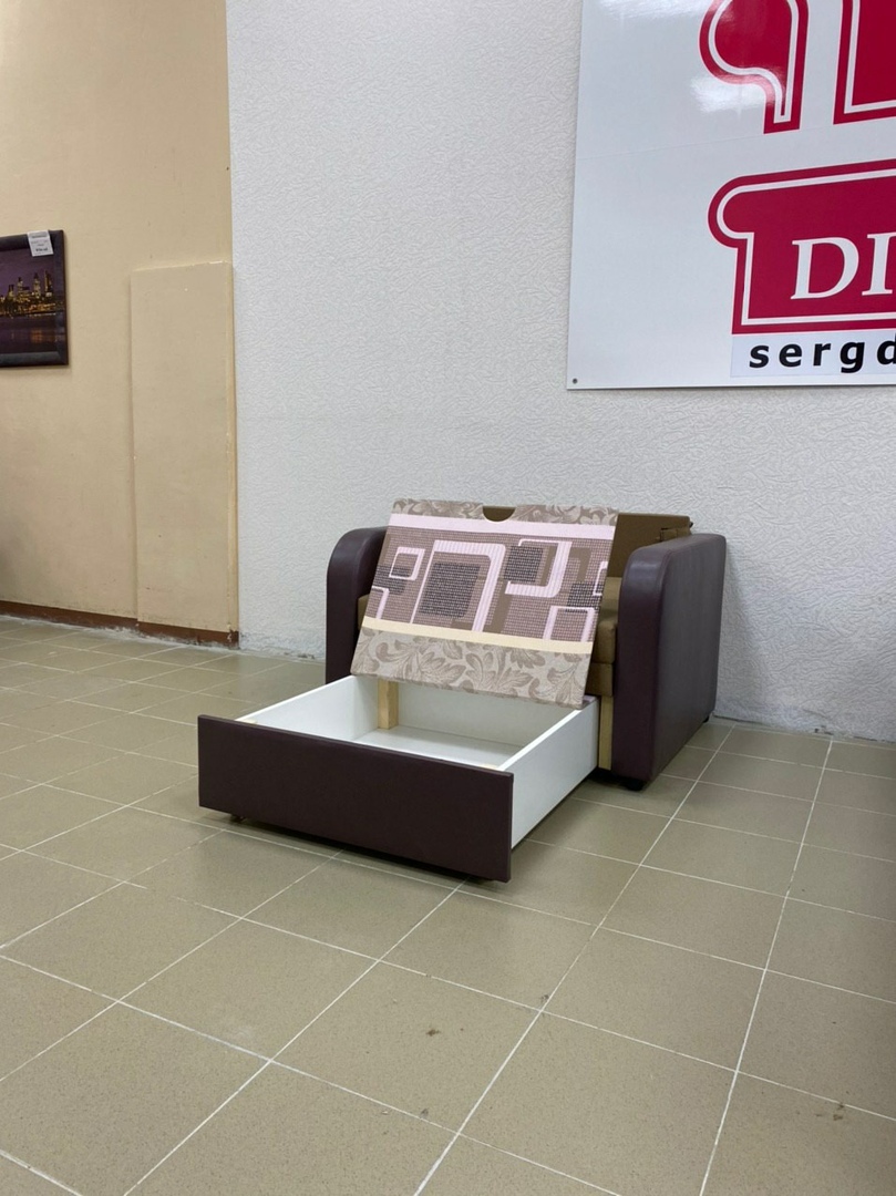 - Особенности: предусмотрен ящик для белья, что делает кресло-кровать ещё более удобным и практичным решением.