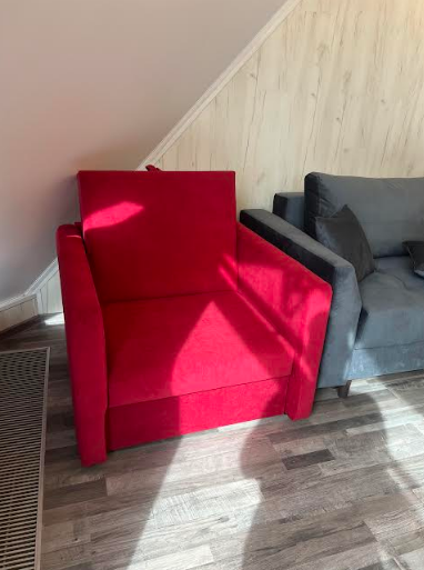 Стильное малогабаритное кресло с механизмом раскладки и ящиком для белья.
