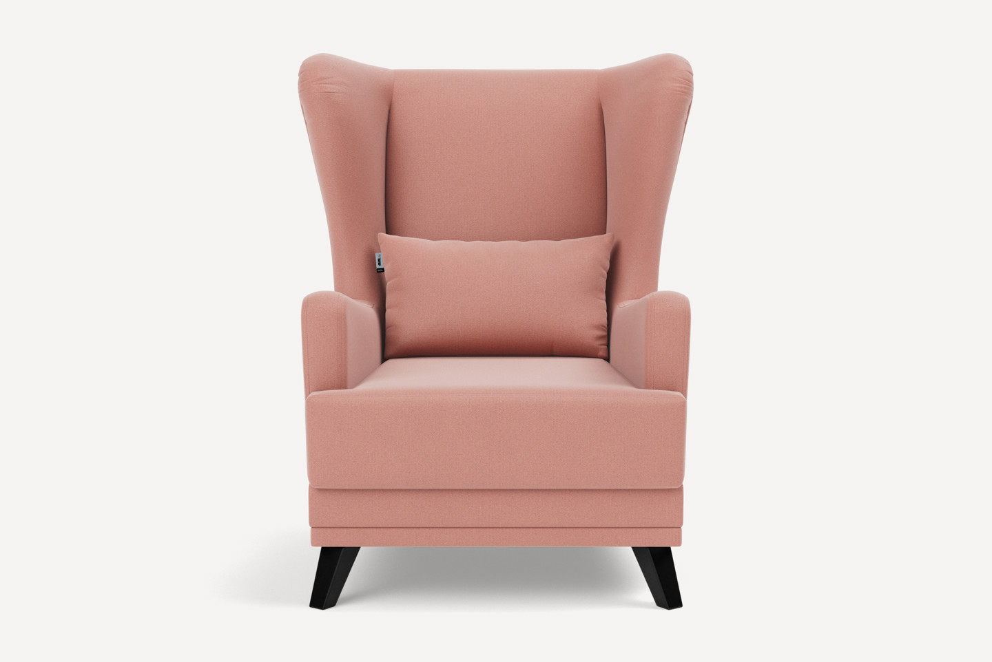 Модель выдержана в истинно британском стиле, начиная от необычной формы изголовья и заканчивая закругленными ножками. Обивочная ткань не скатывается и легко чистится пылесосом, что делает уход за креслом ещё проще.