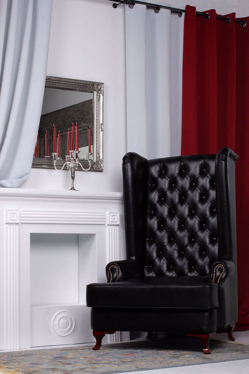Роскошное кресло в форме трона с высокой стеганной прямой спинкой и широким сиденьем в кожаной обивке. Высокие фигурные боковины с компактными подлокотниками валиком подчеркивают статусность владельца и визуально очерчивают границы личного пространства.