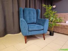 Скандинавское кресло синего цвета. Качественная и долговечная обивка.
