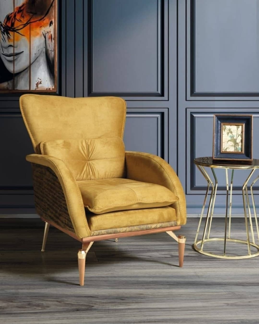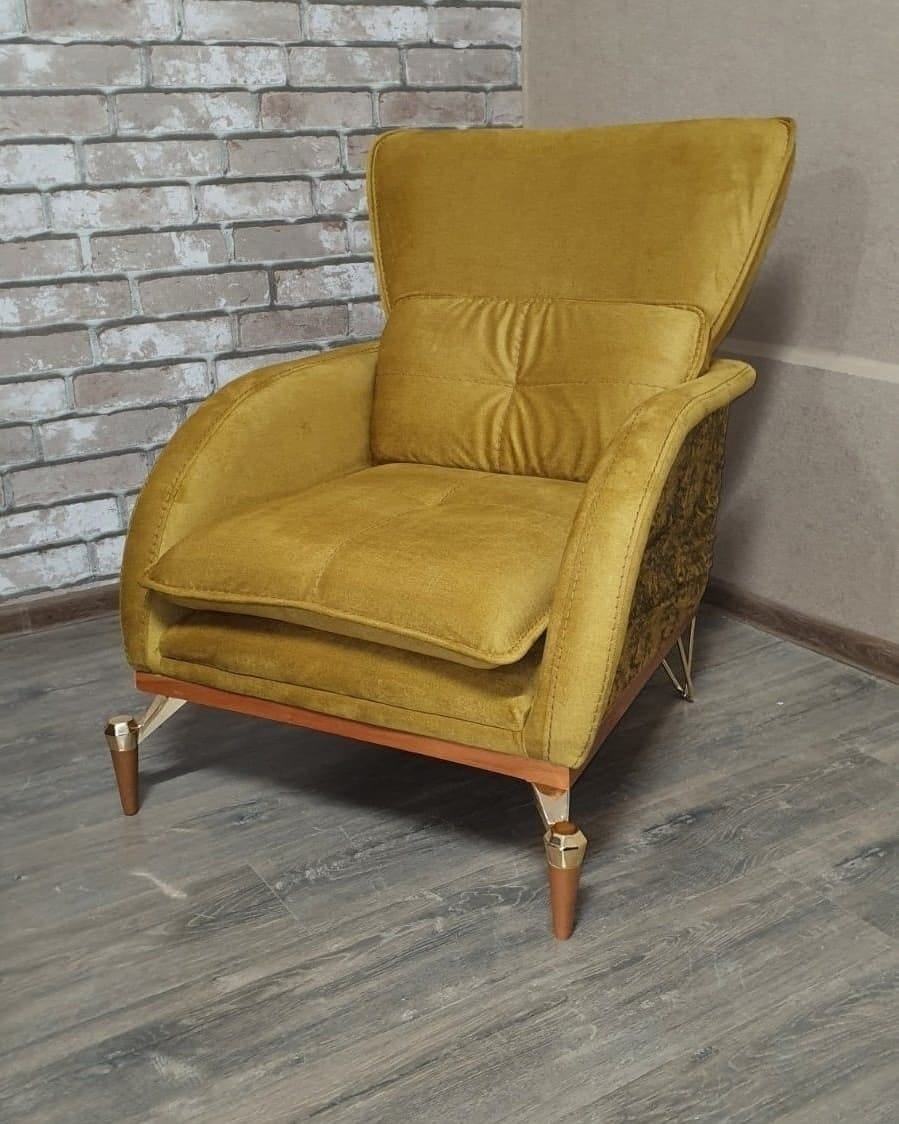 - Яркий жёлтый цвет обивки придаёт креслу оригинальность и жизнерадостность.
