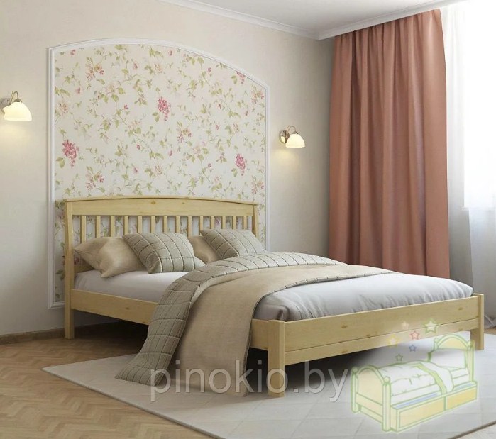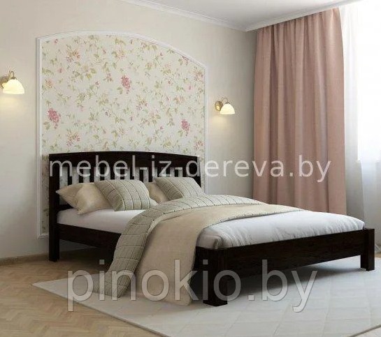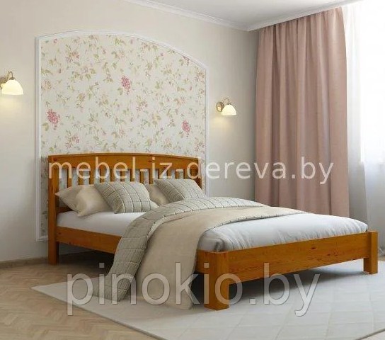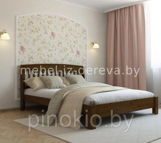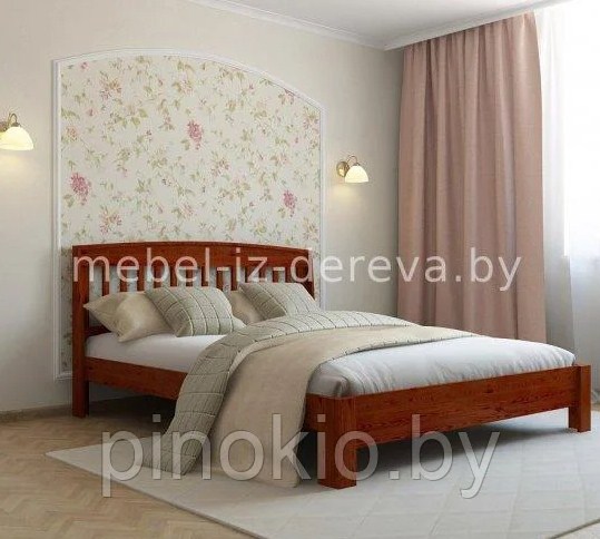 Кровать из массива ольхи или березы, дизайн которой подойдет как для классической, так и для современной спальни.