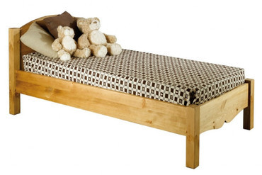Недорогая односпальная кровать стандартного размера. Прочный каркас. Плавные и аккуратные формы. Изделие выполнено на 100% из массива сосны. При отделке применялась технология вощения. Присутствует легкий эффект старения. Матрац в цену не входит.