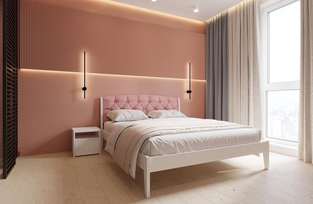 Кровать, целиком выполненная из массива ольхи или березы. Минималистичный дизайн с четкими линиями создаст атмосферу элегантной простоты в вашей спальне.