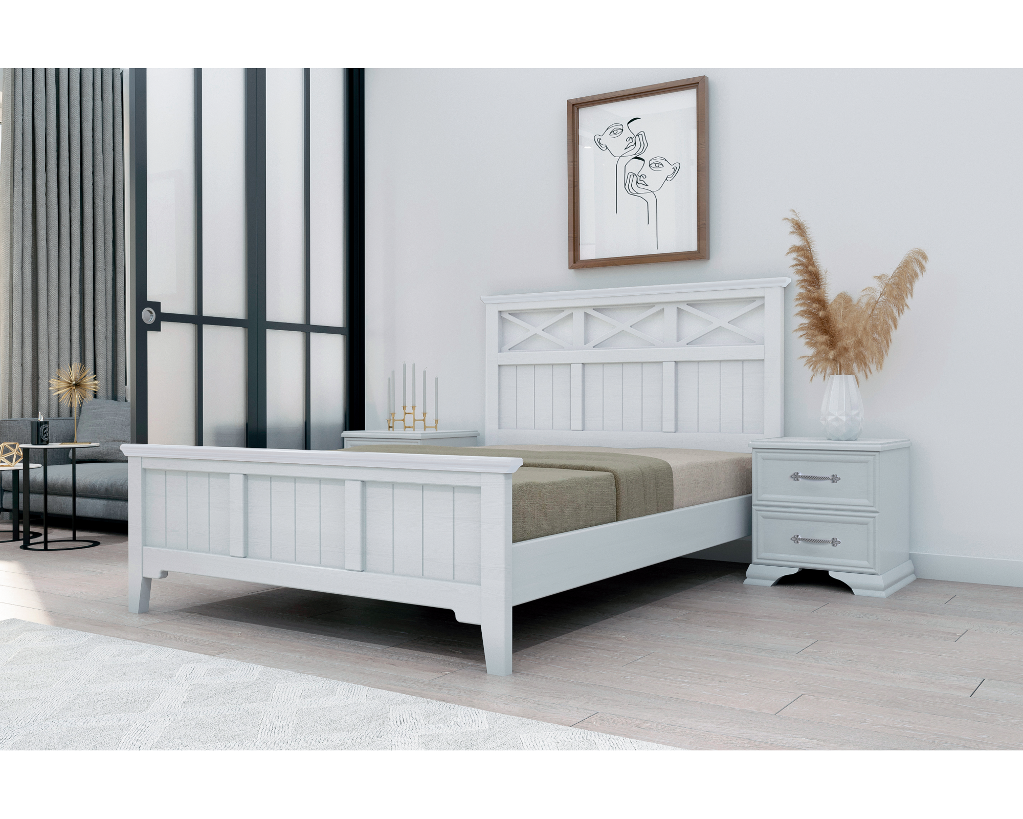Элегантные кровати из массива серии "Грация" будут отлично смотреться в спальнях в парижском или скандинавском стиле. Их светлые и натуральные оттенки создадут настроение уюта и покоя. Модель доступна для заказа в 2-х размерах спального места (140, 160 х 200 см).