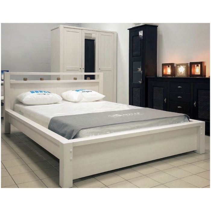 Кровать из массива сосны «Фьорд» (Белый воск)