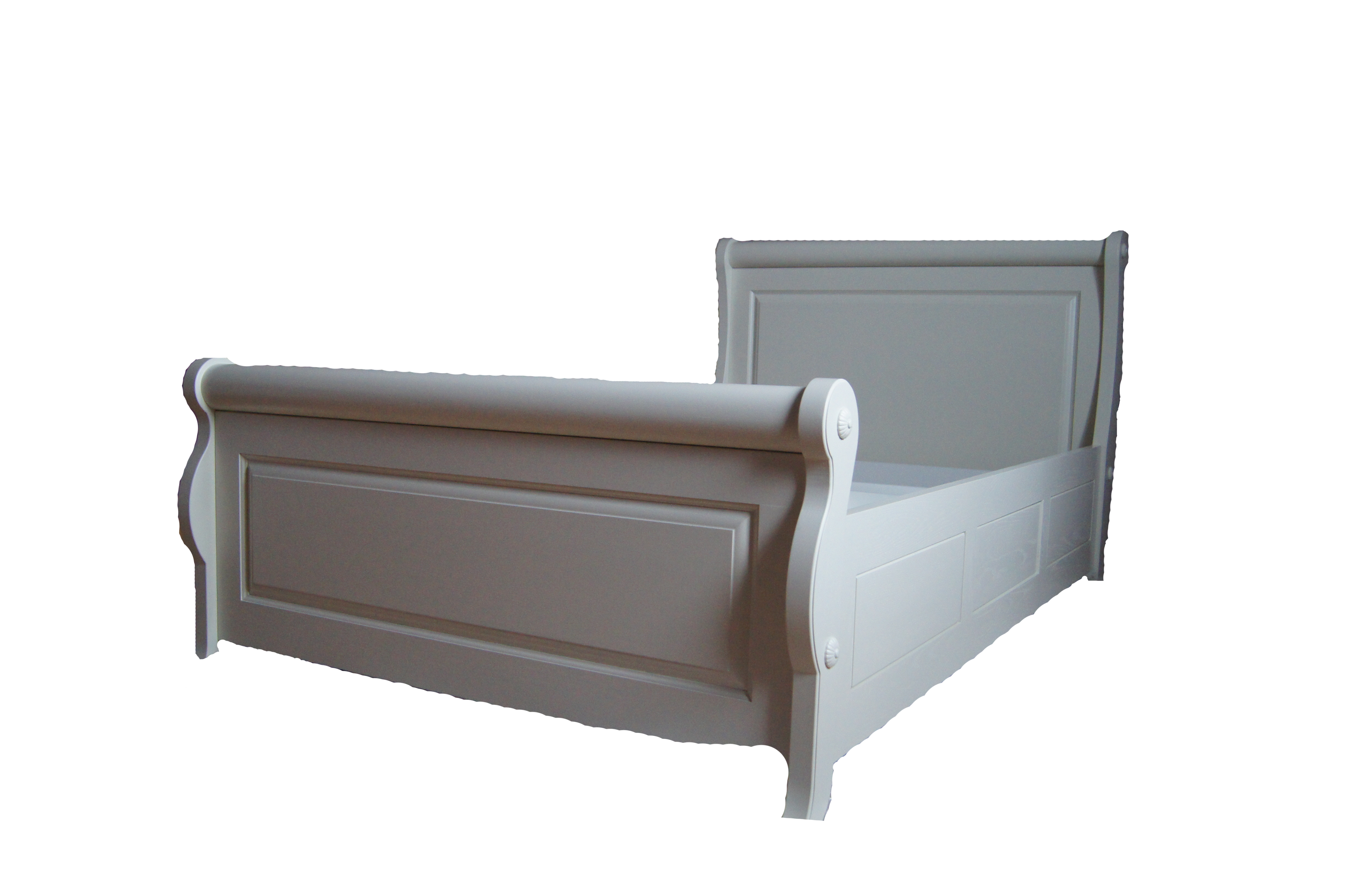 Кровать выполнена из натурального массива в белом цвете. Изысканная фрезеровка придает кровати индивидуальный стиль. Изножье и крупное изголовье исполнены как резные элементы, Классический дизайн и натуральный цвет модели зададут настроение для всего интерьера спальной комнаты.