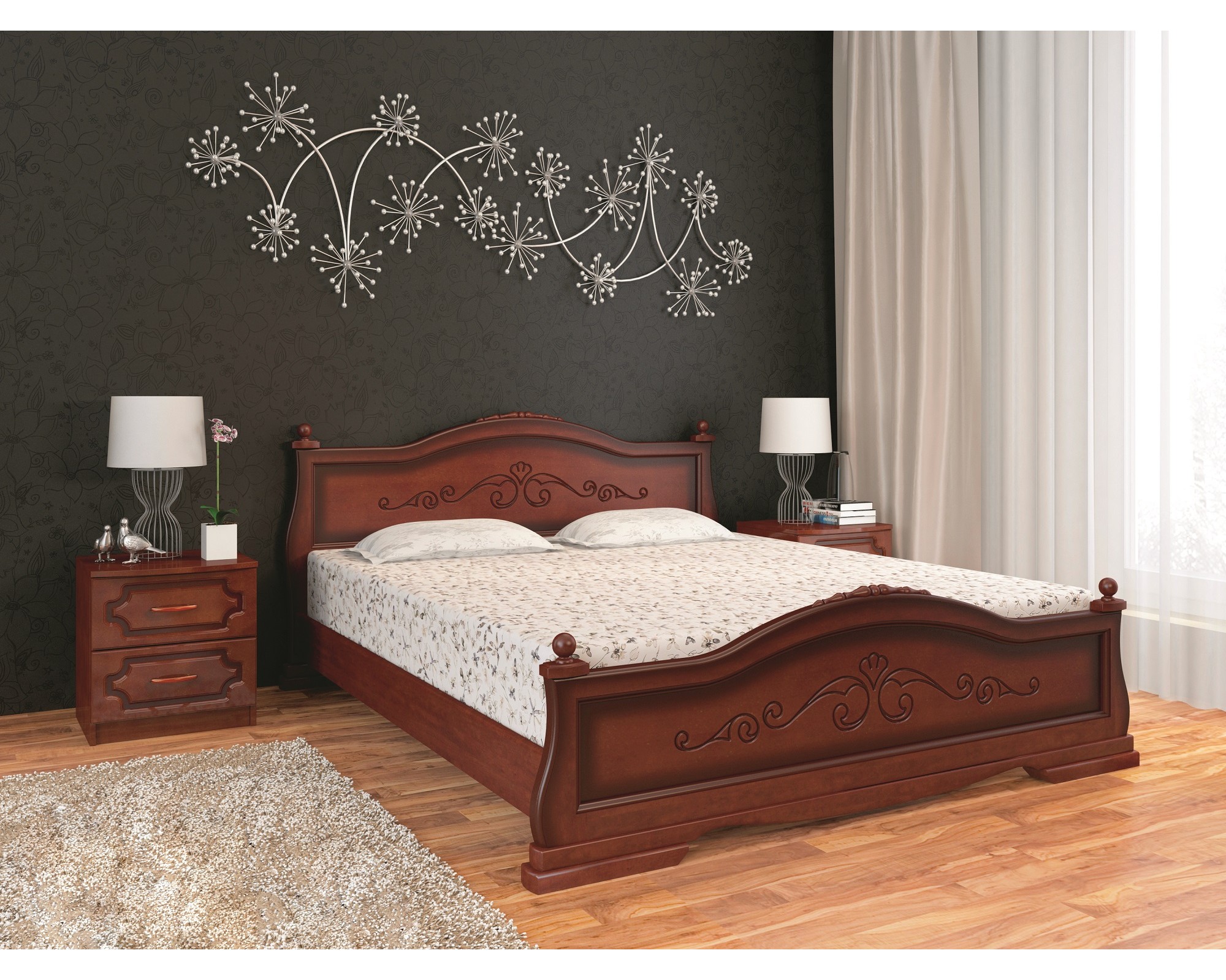 Кровать «Массив-2» орех (лак) (Элегия)
