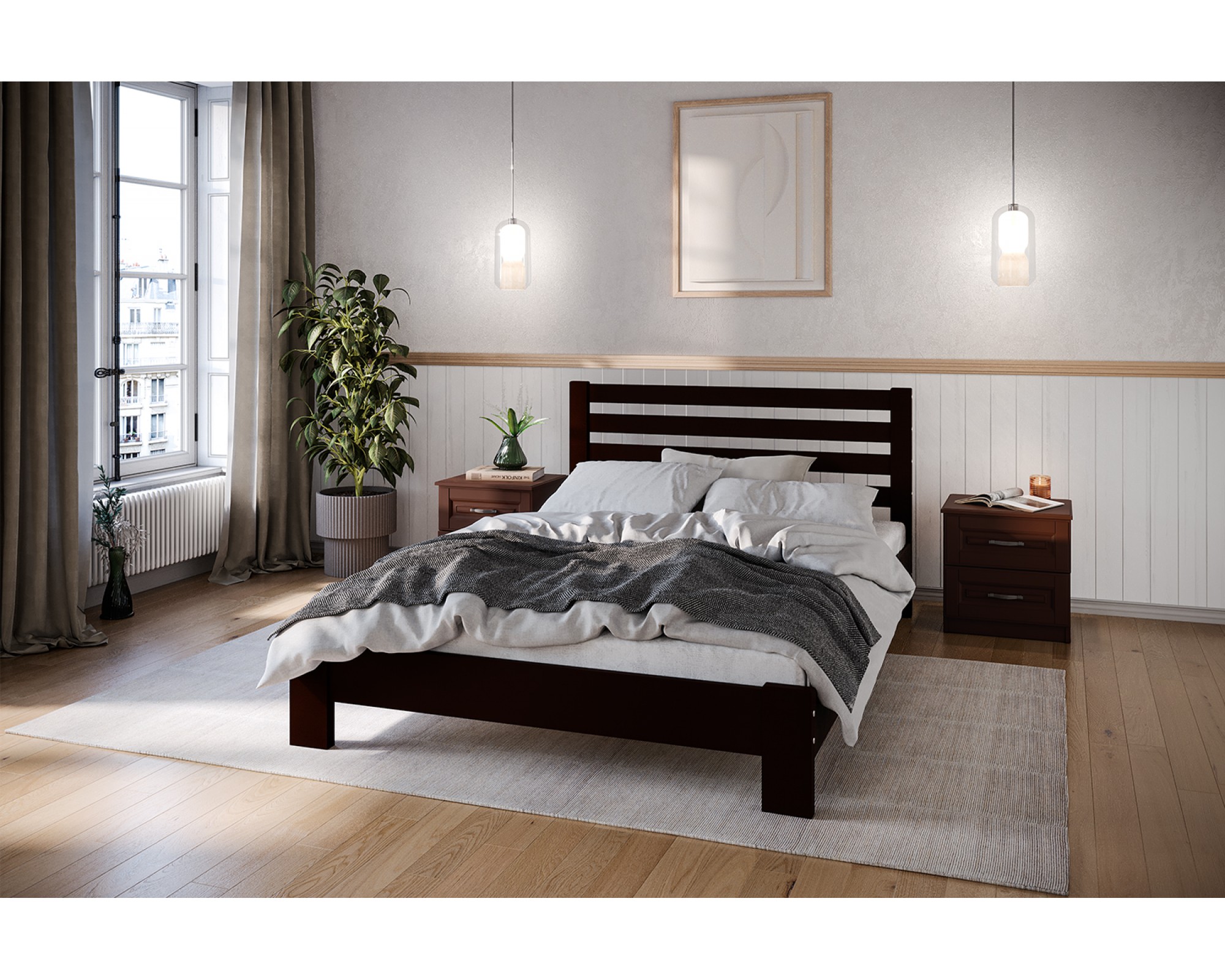 Спальное место: 140х200 см. Материал: массив сосны.