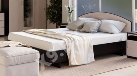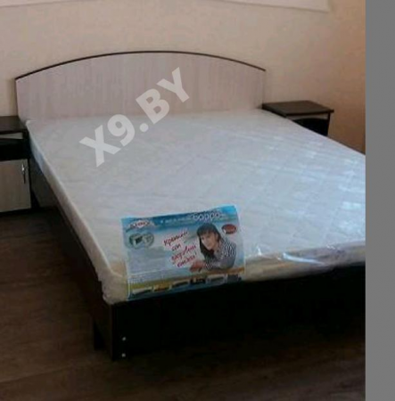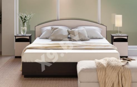 Двуспальная кровать с ортопедическим основанием и мягким изголовьем.