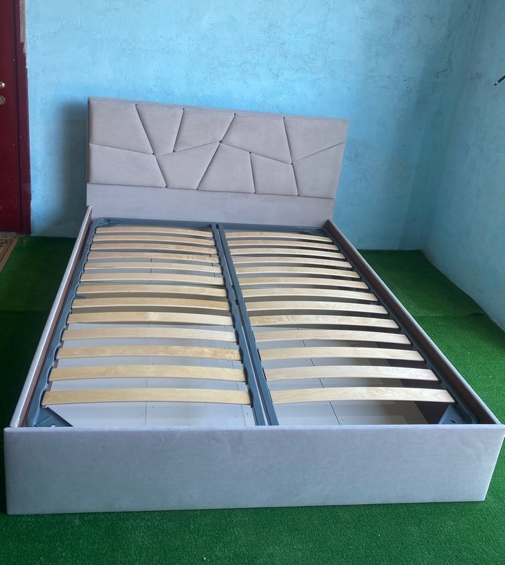 Двуспальная кровать с ортопедическим основанием и мягким изголовьем.
