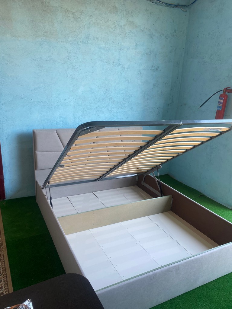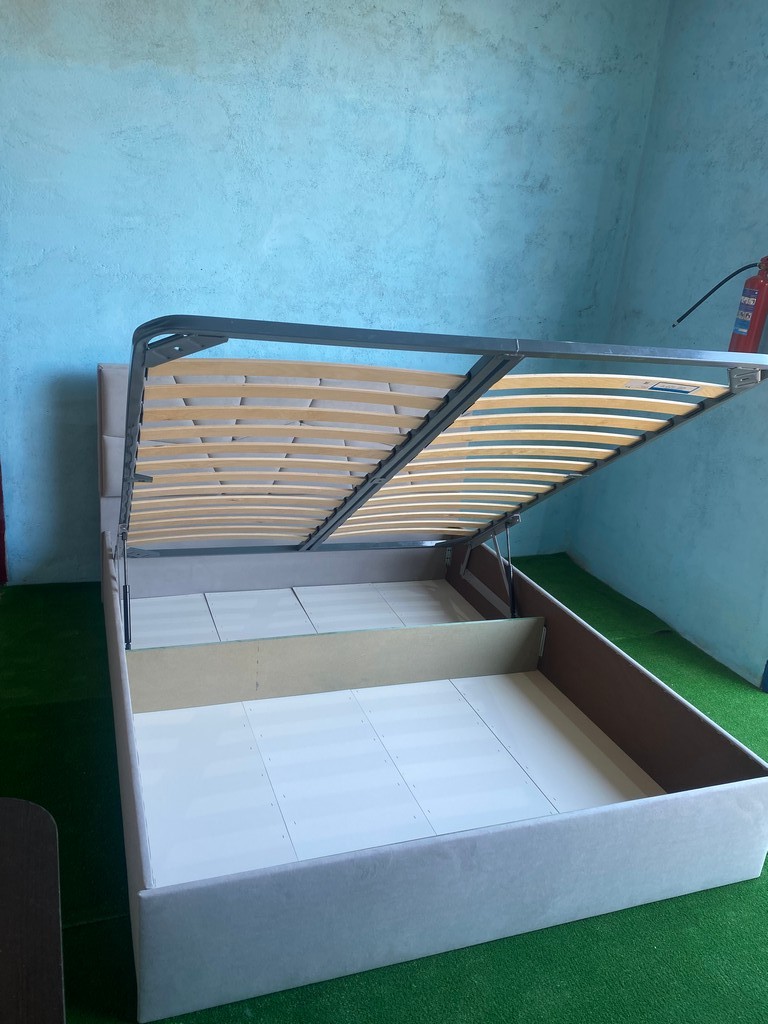 Кровать комплектуется подъемным механизмом с ортопедическим основанием. Спальное место на выбор.
