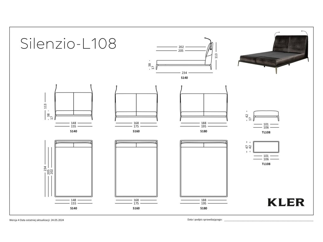 Кровать KLER SILENZIO доступна в трех размерах по матрасу:140х200;160х200;180х200. Пространство под кроватью-17 см.
