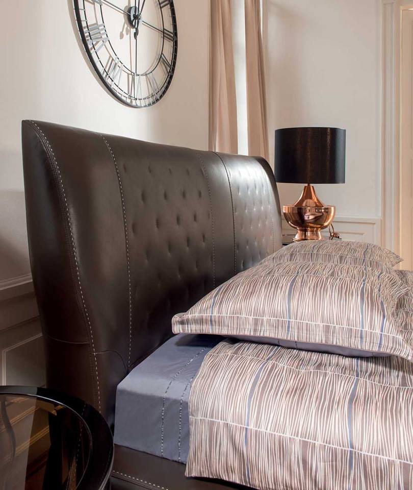 Кровать, которая привлекает внимание своим великолепным, высоким изголовьем, с формой, являющейся развитием формы каминного кресла с "ушками" – с боковыми швами, выходящими за линию спинки так, чтобы верхние углы были хорошо заметны. Обивка выполнена искусно - гладкая, блестящая кожа сочетается с равномерно стегаными штрихами - и все вместе излучает спокойную роскошь. Элегантная и стильная кровать KLER TURANDOT подойдет как в современный, так и в классический интерьер. Интересное дизайнерское и функциональное решение данной модели заключается в возможности выбора высокого (на ножках) или низкого положения кровати (каркас на полу). В кровати без ножек возможно изготовление ящика для хранения, который открывается без особых усилий благодаря современному механизму подъема основания с газлифтами. Каркас кровати изготовлен из натурального дерева лиственных пород. Обивочный материал — натуральная кожа или ткань. Размеры матраса 160 / 180 см x 200 см (в комплект не входят).