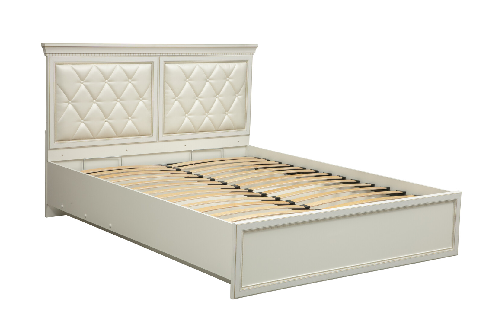 Кровать «40.13-03 Эльмира» (белый/белая кожа патина) Олмеко