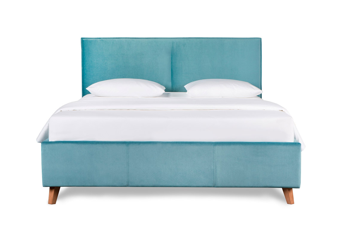 Кровать «Амелия Люкс» изготовлена из древесного массива и ДСП. Внешний вид: мягкая текстильная обивка для боковин, изножья и изголовья, высокие деревянные ножки (высота 6 см). Кровать оборудована нишей для хранения постельных принадлежностей и ортопедическим основанием с подъемным механизмом.