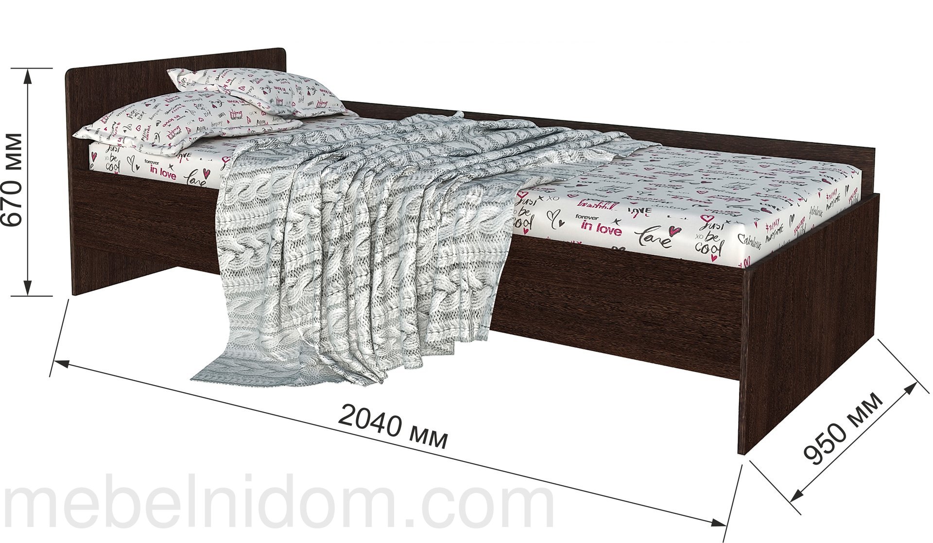 Размер: 1924x1116x2127 мм. (матрац 1800х2000). Материал: ЛДСП.