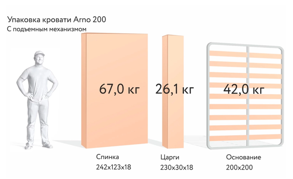 Кровать оснащена подъемным механизмом, в ней предусмотрен вместительный ящик для хранения. Ортопедический матрас.