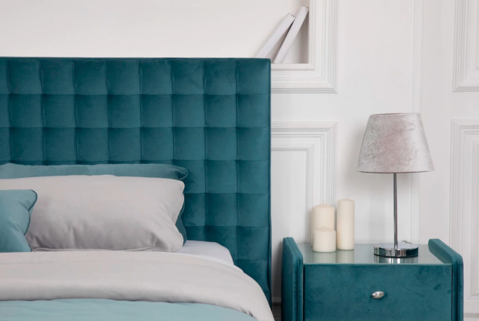 Оригинальное геометричное оформление изголовья кровати. Современный дизайн для нескучных интерьеров. Большой выбор тканей обивки.