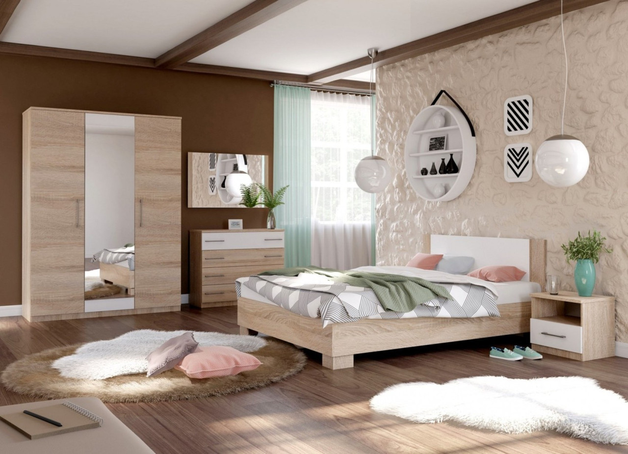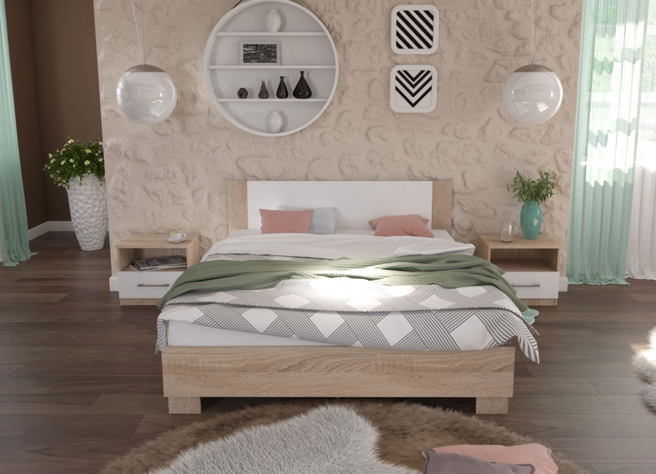 Кровать «Аврора 140*200» с основанием Дуб Сонома/белый Imperial