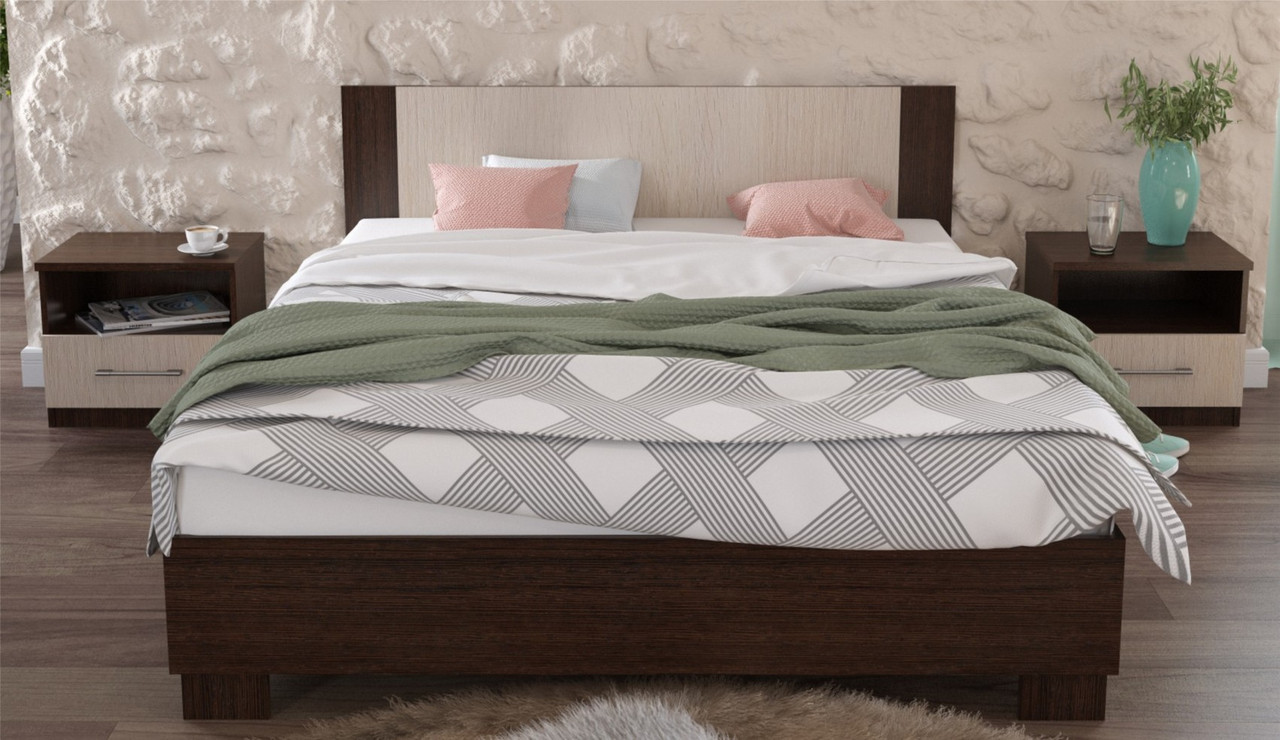 Кровать «Аврора 140*200» с основанием венге/дуб молочный Imperial