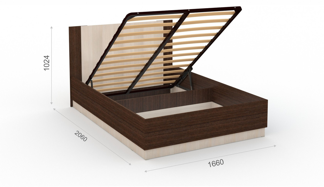 Кровать «Аврора 160*200» (подьемник) с основанием венге/дуб молочный Imperial