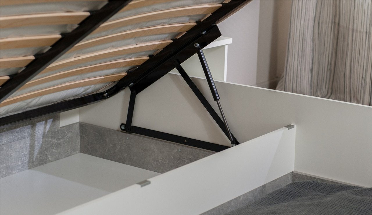 - Ортопедическое основание на газовых лифтах - подъемная часть кровати надежно фиксируется в открытом и закрытом положении