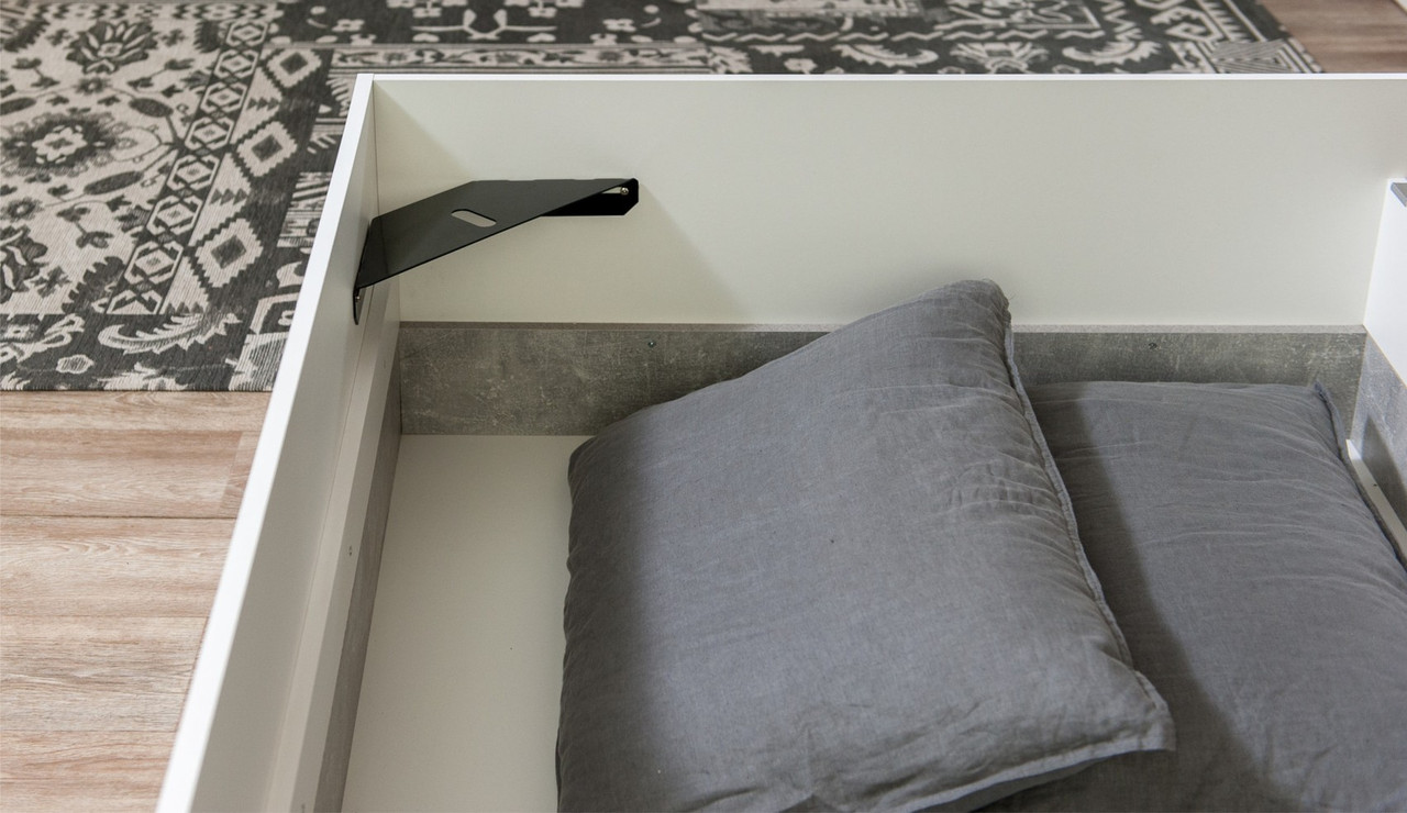 - Две секции для хранения - можно складывать подушки, одеяла и любые другие вещи