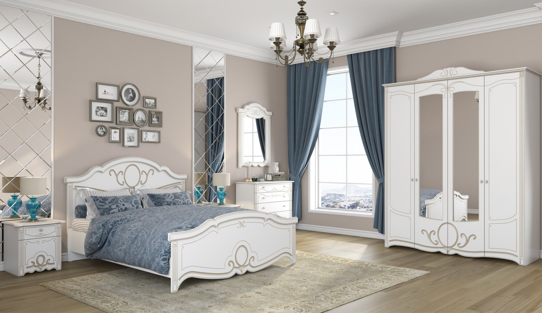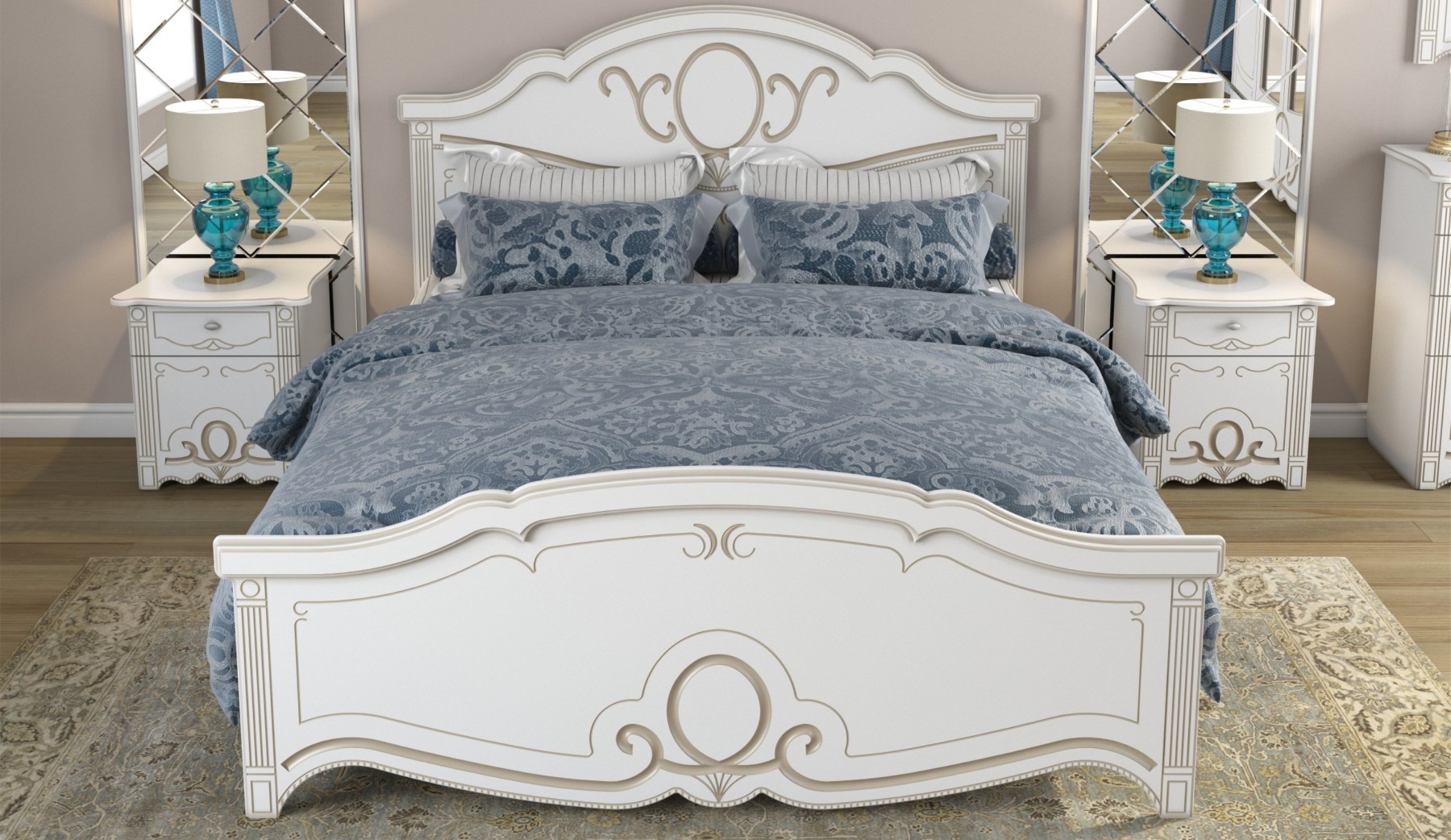 Кровать «Барбара» Белый патина золото