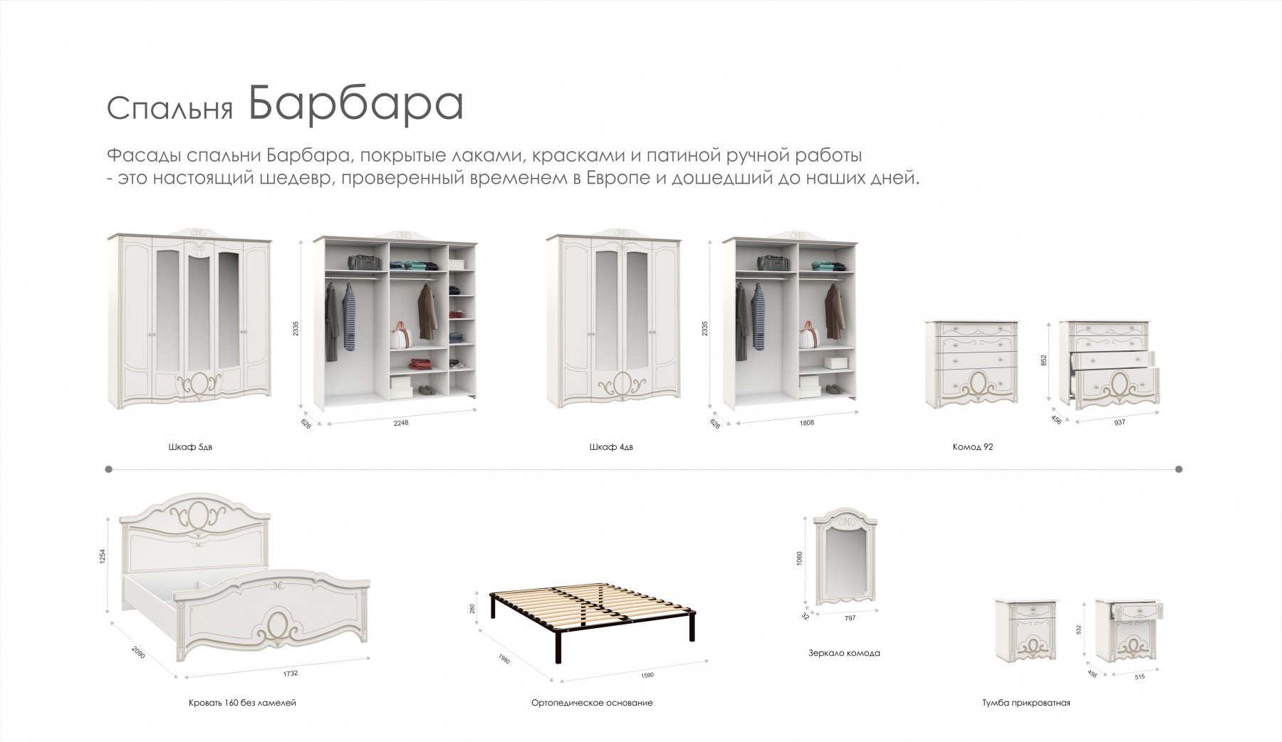 Размер кровати (ВхШхГ): 1260х1960х2260 мм. Спальное место: 2000х1800 мм.