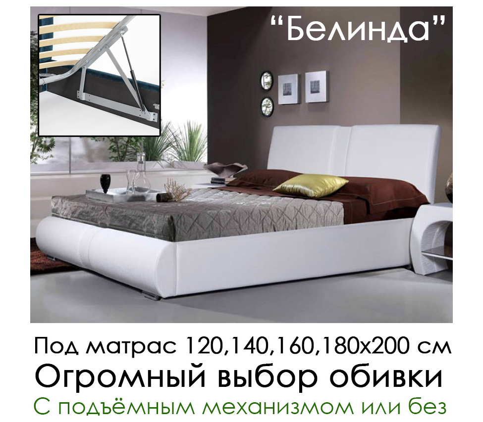 Спальное место: 160х200 см. Ортопедическое основание ламели. Огромное количество тканей под заказ.