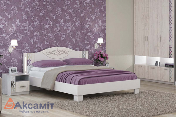 - Спинка кровати декорирована зеркалом с пескоструйным рисунком;