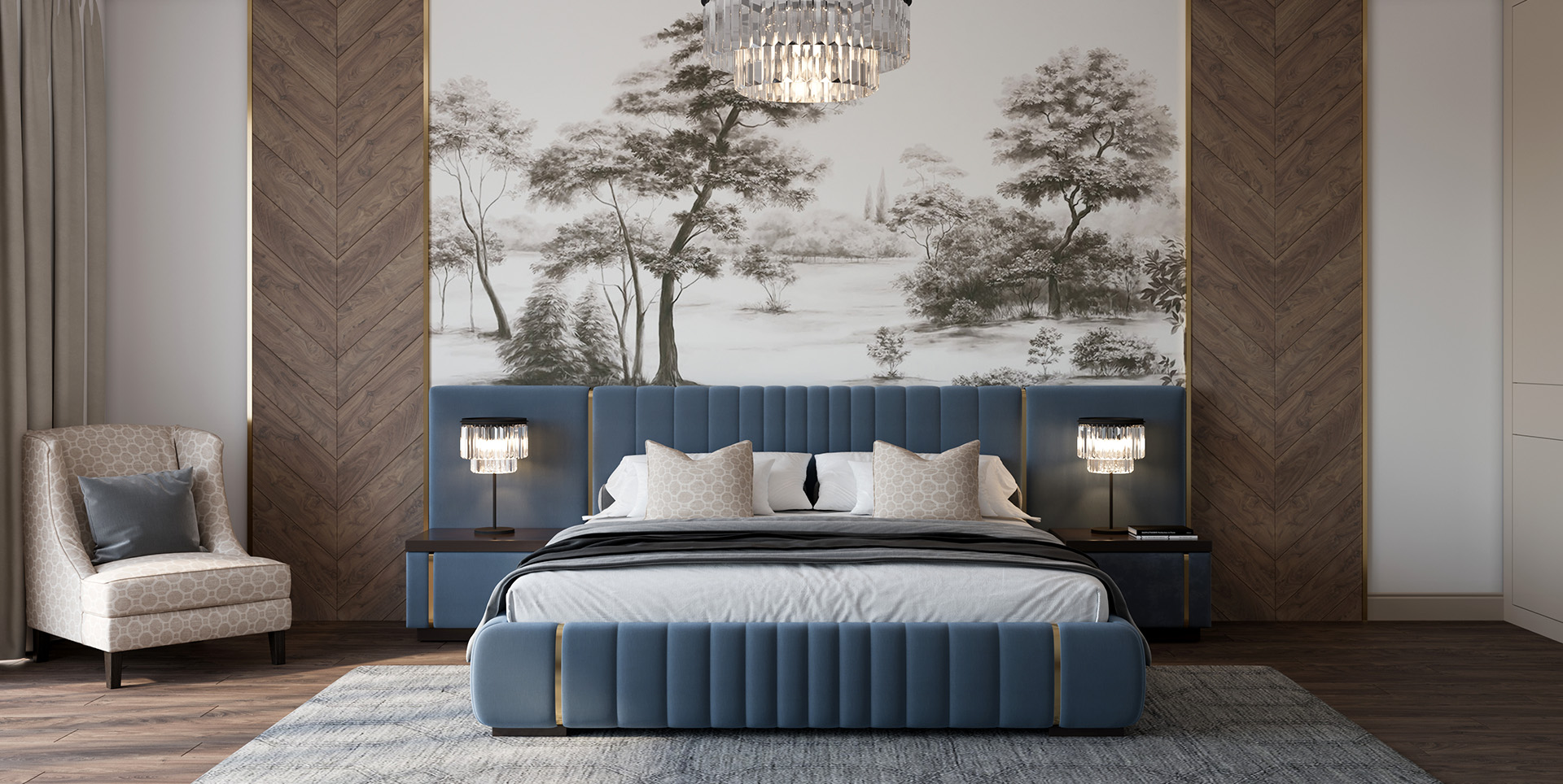 Кровать «Нельсон Абстракция» кобальт (БРАВОмебель)