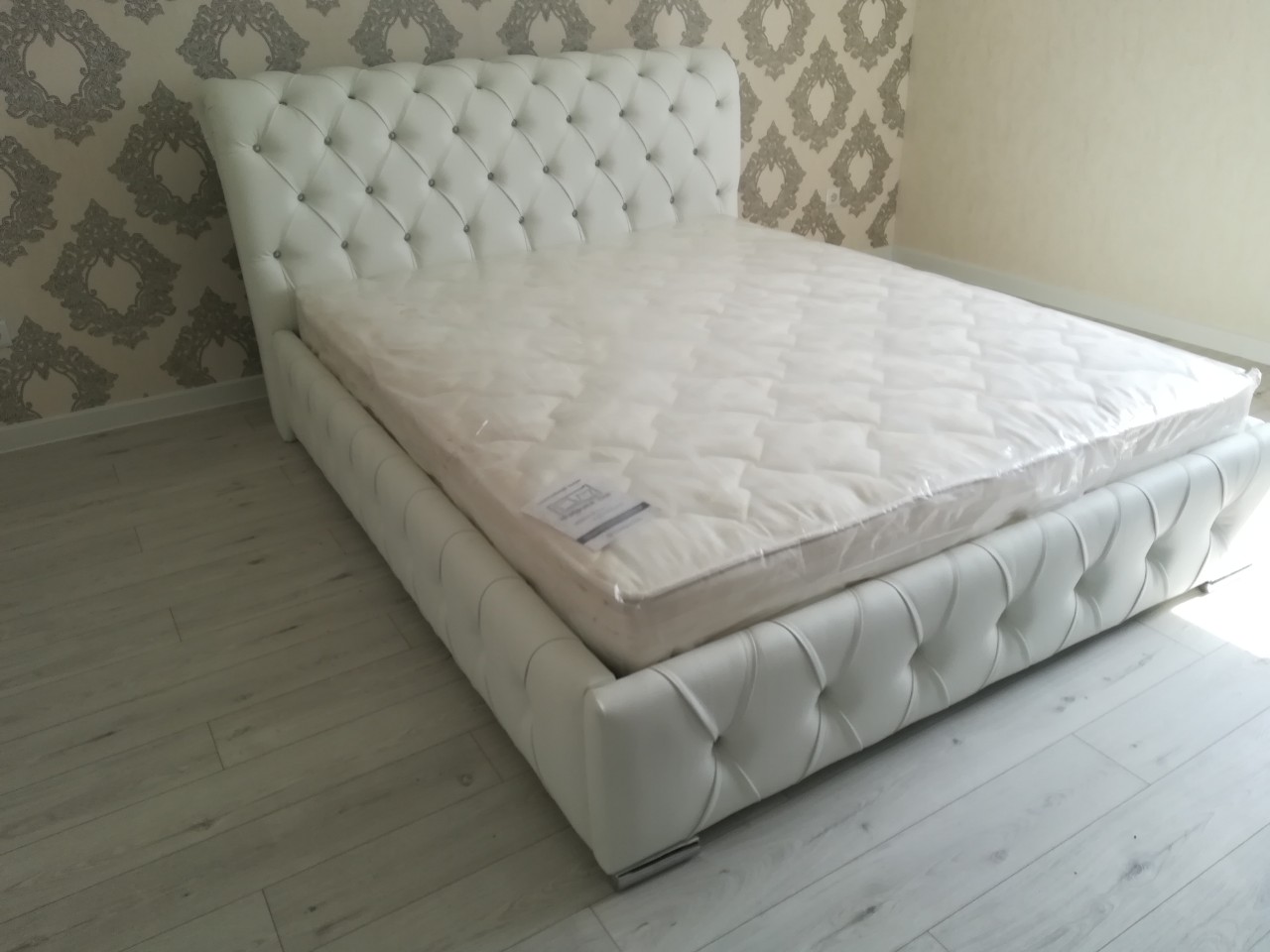В комплект входит кровать, ортопедическое металлическое основание на ножках.